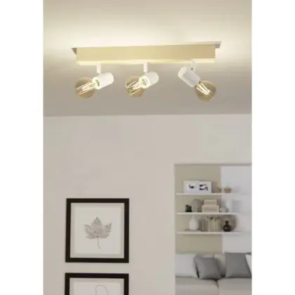 Eglo Deckenleuchte Townshend 3 Holz Stahl Weiß | IP20 - Geeignet für 3x E27