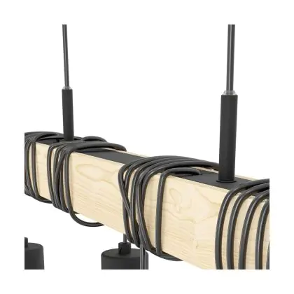 Eglo Pendelleuchte Townshend 5 Stahl Holz Schwarz | IP20 - Geeignet für 4x E27