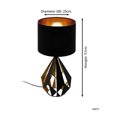Eglo Tischlampe Carlton 5 Stahl Schwarz Bernstein | IP20 - Geeignet für 1x E27