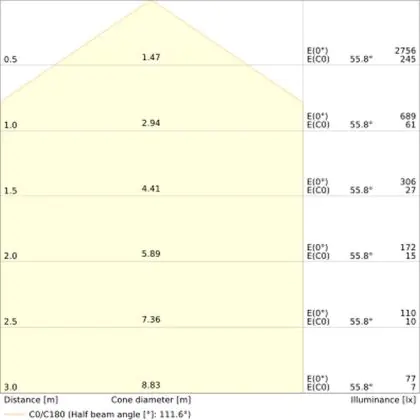 ![]() Der IP-Wert zeigt an, wie gut das Leuchtmittel gegen das Eindringen von Feuchtigkeit und Staub geschützt ist. Die erste Ziffer gibt den Schutz gegen Staub an: von 0 = „gar keinen Schutz“ bis 6 = „komplett staubdicht“. Die zweite Ziffer zeigt den Schutz gegen Feuchtigkeit an: von 0 = „gar keinen Schutz“ bis 8 = „geschützt gegen Untertauchen“. Daraus resultiert: Produkte mit einer IP44-Schutzklasse sind vor Spritzwasser geschützt, Produkte mit IP65 oder höher sind (komplett) staub- und wasserdicht. |