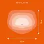 Der Abstrahlwinkel bezeichnet den Winkel, in dem das Licht aus der Lichtquelle ausgestrahlt wird. Er wird in Grad (D) angegeben. Je geringer die Gradzahl des Abstrahlwinkels ist, desto kleiner ist auch der Durchmesser des Lichtkegels, den die Lichtquelle produziert. Beispiel: Wird eine Lampe mit einem Abstrahlwinkel von 60 Grad an der Decke (2,5 m Höhe) angebracht, erzeugt sie einen Lichtkegel von 2,9 Metern Durchmesser. Hat die Lampe hingegen einen Abstrahlwinkel von 120 Grad, beträgt der Lichtkegel 8,7 Meter im Durchmesser. |