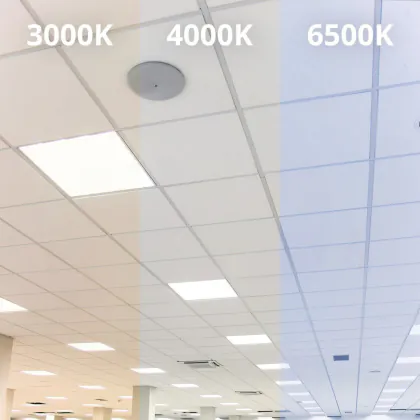 Les dimensions les plus courantes des panneaux LED sont 60x60cm (carrés) et 30x120cm (rectangulaires). Ce sont des tailles standard pour presque tous les plafonds/ des plafonds à grille. D'autres dimensions sont également disponibles, telles que 20x120cm ou 15x150cm.