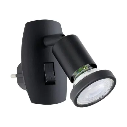 Eglo Applique Murale Parrini Lamp avec Prise Noir 4.5W 345lm - 830 Blanc Chaud | IP20 - Incl. 1x GU10