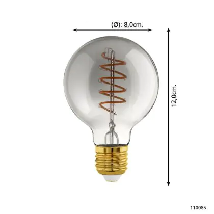 Description Eglo LED Globe E27 Filament Smokey 4W 100lm - 820 | Dimmable - Remplacement 15W