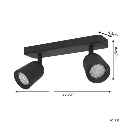 Eglo Plafond Spot Camaldoli Échantillon Noir | Convient pour 2x GU10