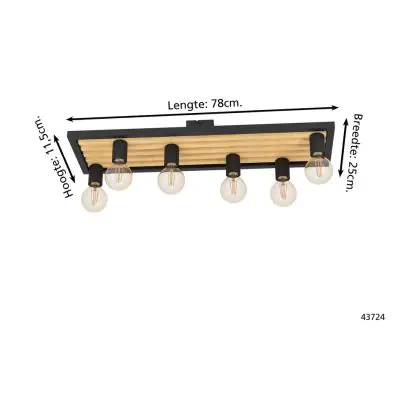 Eglo Plafonnier Consett Échantillon Bois Noir Brun | IP20 - Convient pour 6x E27