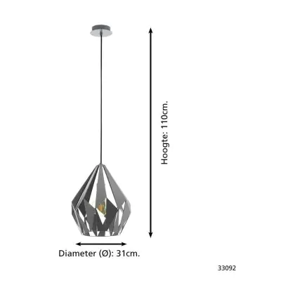 Eglo Suspension Luminaire Carlton 1 Échantillon Gris | IP20 - Convient pour 1x E27