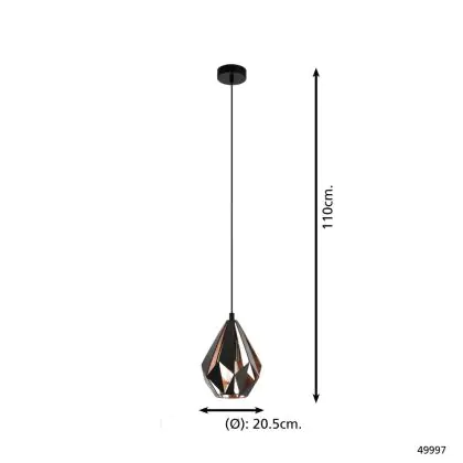 Eglo Suspension Luminaire Carlton 1 Noir, Cuivre | Convient pour E27