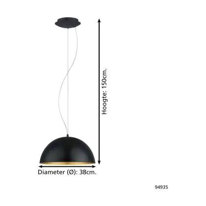 Eglo Suspension Luminaire Gaeta 1 Échantillon Noir Dorée | IP20 - Convient pour 1x E27