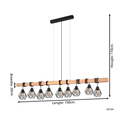 Eglo Suspension Luminaire Townshend 5 Échantillon Bois Noir | IP20 - Convient pour 9x E27