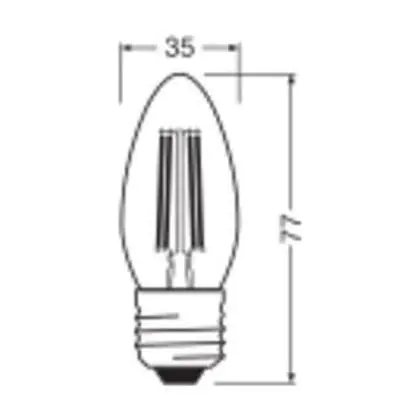 Description Ledvance Classic LED E27 Bougie Filament Claire 3.4W 470lm - 827 Blanc Très Chaud | Remplacement 40W
