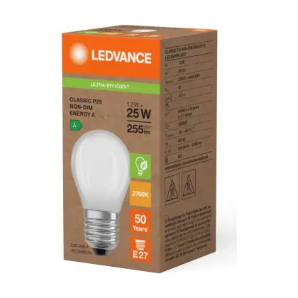| Nom du fabricant | LED CLASSIC P ENERGY EFFICIENCY A S 1.2W 827 Frosted E27 | |