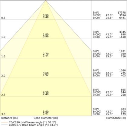![]() Le code couleur se compose de l'indice de rendu des couleurs (IRC) et de la température de couleur (Kelvin). Le premier chiffre indique le rendu des couleurs (1 = très mauvais rendu des couleurs, 9 = meilleure authenticité des couleurs). Le deuxième et troisième chiffre indiquent la température de la couleur. Exemple : Le code couleur "830" indique que la lampe a un bon rendu des couleurs (8) et une couleur de lumière blanche chaude (30 = 3000K). |