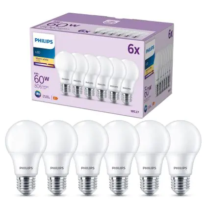 | Nom du fabricant | Box 6 stuks - Philips LED Lamp Mat - 60 W - E27 - Warmwit licht | |