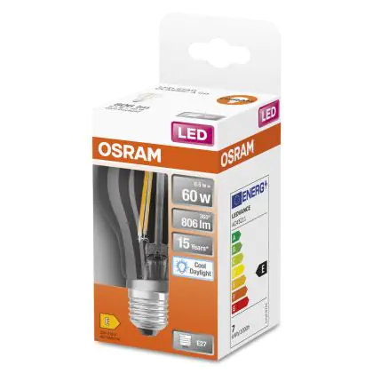 Osram Classic LED E27 Poire Filament Claire 6.5W 806lm - 865 | Remplacement 60W