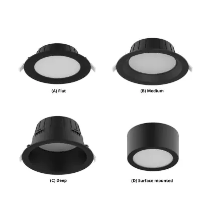 Description Spot Encastrable LED Profond Encastré Noir 15W 1500lm 80D - 827-830-840 CCT | 176mm - Diamètre 150mm